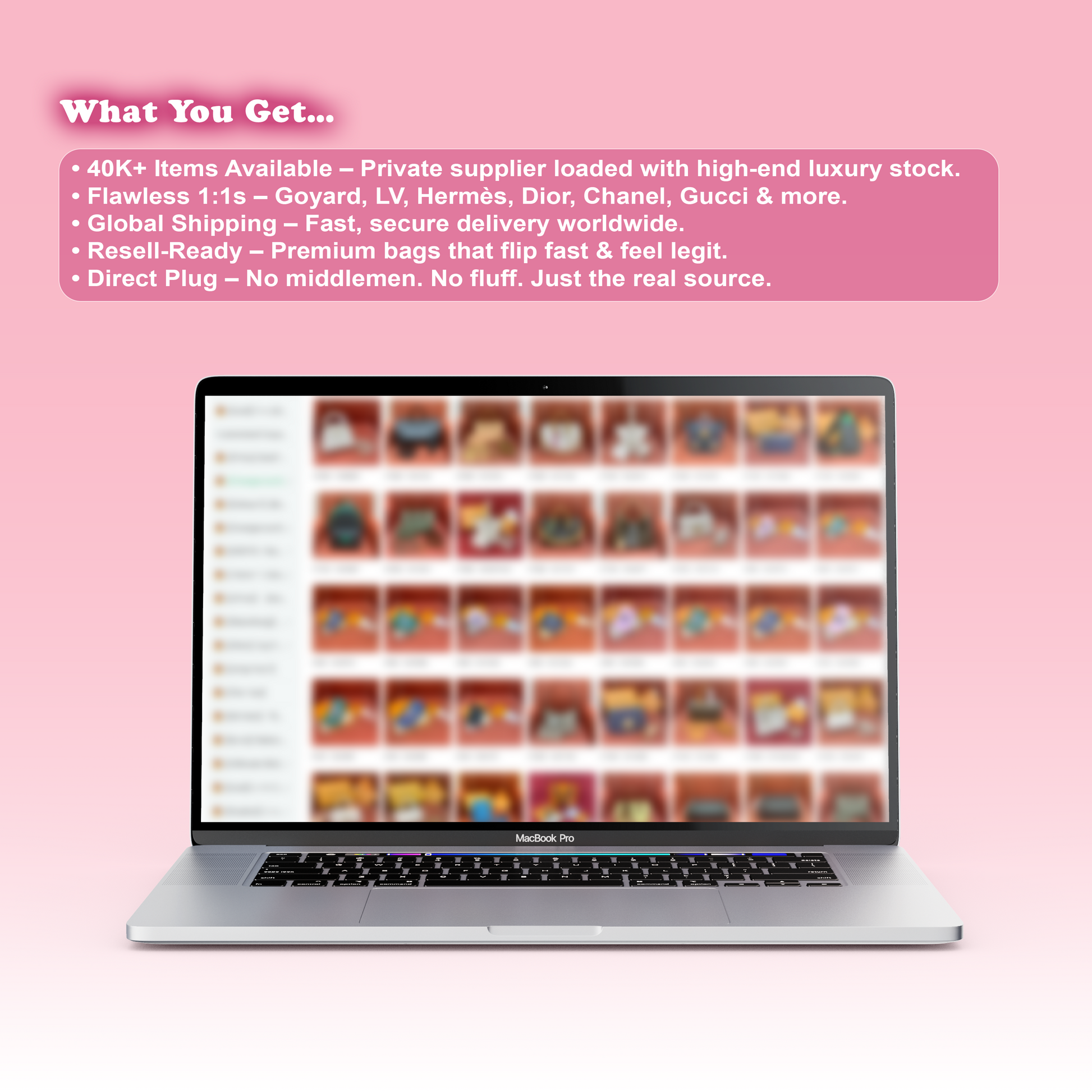 • Bag Supplier Access – 40,000+ trending bag styles ready to resell